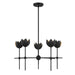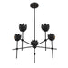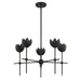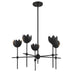 This 5-light chandelier beautifully blossoms forth, infusing your home with organic-meets-modern style. It is illuminated by G9 LED light bulbs and finished in Matte Black. Adjustable height ranges from 14" to 68". Comes with four 12" downrods and one 6" downrod. 26" width. Bulbs not included.