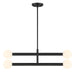This perky, peppy 4-light chandelier has an understated style that makes a big impact! The light shines from inside orbs of white opal glass and the Matte Black finish works beautifully with any decor. You can even rotate the arms for a customized look! This chandelier is 30" in width and has an adjustable height ranging from 8" to 62". It comes with four 12" downrods and one 6" downrod. Uses four G9 LED bulbs of up to 3.5 watts per bulb. Bulbs not included.