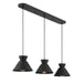 Get iconic mid-century modern style with this 3-light linear pendant, which has chic conical solid metal shades finished in Matte Black. The sleek black hanging cords let you adjust the hanging height of each light to meet the needs of your space. The height ranges from 6" to 126". The length is 40" and the width is 9". Uses 3 standard size bulbs of up to 60 watts per bulb. Bulbs not included.