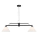 This crisp and elegant 2-light island pendant is a perfect way to illuminate a kitchen island, a long dining table, a billiards room or any other stylish space. Conical shades of opal white glass provide bright, smooth light. Understated detailing, finished in Matte Black, adds a thoughtful touch. Adjustable height ranges from 10" to 64". Comes with eight 12" downrods and two 6" downrods. 40" in width. Uses 2 standard size bulbs of up to 60 watts per bulb. Bulbs not included.
