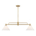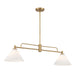 This crisp and elegant 2-light island pendant is a perfect way to illuminate a kitchen island, a long dining table, a billiards room or any other stylish space. Conical shades of opal white glass provide bright, smooth light. Understated detailing, finished in Natural Brass, adds a thoughtful touch. Adjustable height ranges from 10" to 64". Comes with eight 12" downrods and two 6" downrods. 40" in width. Uses 2 standard size bulbs of up to 60 watts per bulb. Bulbs not included.