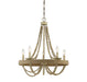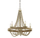 Typical chandelier style is given a relaxed, rustic makeover in this 5-light chandelier! A rope-wrapped ring is accentuated by rows of textural beads and then finished in Natural Wood. 28" in height and 26" in width.
