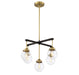This 5-light chandelier offers up an interesting lighting look that is reminiscent of a marionette on strings. One light hangs further down from the other four and all are outfitted with orb-shaped clear glass shades. Finished in Oil Rubbed Bronze with Natural Brass accents. 16" in height and 22" in width.