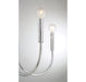 In this 5-light chandelier, bold midcentury modern style flows forth as if from a fountain. Long, slender arms curve dramatically down and then up again, where they are topped with bulbs. To get the exact look seen here, purchase globe-shaped bulbs! Finished in chrome. It is 25" in height and 25" in width, plus it comes with 120" of chain to let you adjust the hanging height as needed. It uses 5 candelabra size bulbs of up to 60 watts per bulb, is LED compatible and is dimmable.