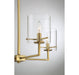 When you bring this 4-light chandelier to your home, people will compliment you on its sharp and sleek style! It combines cylinders of clear glass with boldly angled arms that are finished in natural brass. It is 19.75" in height and 25.63" in width, plus it comes with 120" of chain to let you adjust the hanging height as needed. It uses 4 candelabra size bulbs of up to 60 watts per bulb, is LED compatible and is dimmable.