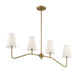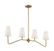 Meridian M10078NB Four Light Chandelier, Natural Brass