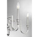 Elegantly geometric, this 6-light chandelier is a showcase of bold style for any home. Finished in polished nickel. 32" in height and 29" in width. Comes with 120" of chain to allow for hanging height adjustment. Uses 6 candelabra size bulbs of up to 60 watts per bulb.