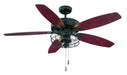 Add industrial style to your home with this ceiling fan, which offers up a metal wire cage to protect the exposed light sources and is finished in Oil Rubbed Bronze. Reversible blades allow you to choose from cherry and chestnut. 20.12" in height and 52" in width.