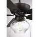 This 52" ceiling fan uses a touch of vintage-inspired style to brighten up today's homes. A curving shade of clear glass pairs perfectly with the Oil Rubbed Bronze finish. The blades allow you to choose from chestnut and rubberwood finish options. It is 22.43" in height and 52" in width. A 4.5" downrod is included. This ceiling fan includes 1 LED bulb that uses 7 watts of energy and gives off 800 lumens with a color temperature of 3000K. Additional downrod lengths are available. The energy information is: 3522 CFM, energy use 58.09 watts, airflow efficiency 60.63 CFM per watt. This fan is reversible and uses pull chains.