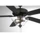 This 52" ceiling fan is an excellent way to stay comfortable and to stay on budget, too. The look is ideal for any home and the integrated clear bubble glass fan light provides bright illumination. Matte black finish. Blades are finished in black on one side and walnut on the other. Features a pull chain for 3-speed reversible control and a dual mounting system, with downrod and hugger, to suit most ceiling heights. Indoor use only.