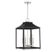 Crisp and traditional lantern style lighting is given an update in this Meridian 4-light pendant, which features a matte black finish accentuated by polished nickel. 25.5" height and 15.25" width. Max 60 watts per bulb, candelabra size C11 bulbs recommended. LED bulb compatible. Supplied with 120" of chain.