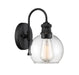 Vintage-inspired knurled detailing on this 1-light outdoor wall light adds a thoughtful touch that makes it ideal for today's homes. The orb-shaped shade of clear glass has a lip at the bottom and pairs up well with the Matte Black finish. Damp area rated, so use this in covered outdoor areas only. It is 10" in height and 6" in width. It extends 8.25" from the wall. It uses 1 standard size bulb of up to 60 watts, is LED compatible and is dimmable.