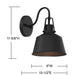 Whether you're living on an expansive range or in the middle of the city, this 1-light outdoor wall light is sure to serve up a heaping helping of farmhouse flair. Finished in Matte Black with vintage-inspired detailing. Damp area rated, so use this in covered outdoor areas only. It is 11.63" in height and 8" in width. It extends 10.5" from the wall. It uses 1 standard size bulb of up to 60 watts, is LED compatible and is dimmable.