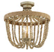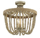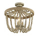 Change out your ceiling mount lights for something a little more intriguing, like this 3-light semi-flush mount. Draped strands of beads encircle the light sources and are finished in Natural Wood. Rope accent adds an extra touch of style. 13.5" in height and 15" in width.