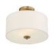 This versatile 2-light ceiling semi-flush mount has a crisp white fabric shade and Natural Brass finish. Perfect for brightening up any room! 10" in height and 13" in width.