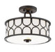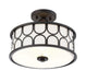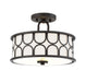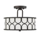 This 2-light ceiling semi-flush mount will add lots of style and useful light to any room! It flaunts a geometric pattern with mid-century inspiration and a crisp white fabric shade. Oil Rubbed Bronze finish. 10" in height and 13" in width.