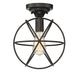 This 1-light ceiling mount has an intriguing look thanks to intersecting bands finished in Oil Rubbed Bronze. 11.75" in height and 10" in width.