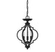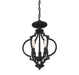 This charming Meridian 3-light convertible semi-flush light showcases an eye-catching quatrefoil style and is finished in a chic matte black that goes with anything. It is 16" in height and 11" in width. This light uses 3 candelabra size bulbs with a max of 60 watts per bulb, is LED compatible and is dimmable. You can use this light as a ceiling semi-flush light or as a hanging pendant and it comes with 120" of chain for pendant use.