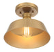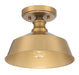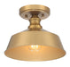 Bring a bold touch of vintage industrial style to any space with this 1-light ceiling light. It features a solid metal shade, eye-catching detailing and a natural brass finish. 7.75" height, 10" width. Uses standard size bulb, max 60 watts. LED bulb compatible.