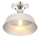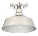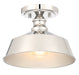 Bring a bold touch of vintage industrial style to any space with this 1-light ceiling light. It features a solid metal shade, eye-catching detailing and a polished nickel finish. 7.75" height, 10" width. Uses standard size bulb, max 60 watts. LED bulb compatible.