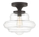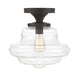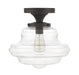 Bring a bold touch of vintage schoolhouse style to any space with this 1-light ceiling light. It features an oil rubbed bronze finish and a curving clear glass shade with eye-catching detailing. 11.75" height, 12" width. Uses standard size bulb, max 60 watts. LED bulb compatible.