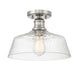 Bring a bold touch of vintage industrial style to any space with this 1-light ceiling light. It features a highly textured shade of glass, eye-catching detailing and a polished nickel finish. 9.19" height, 13" width. Uses standard size bulb, max 60 watts. LED bulb compatible.