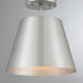 This sleek, chic 1-light ceiling semi-flush mount has a bold solid metal shade to concentrate and direct the light for a bright and dramatic glow. Its Brushed Nickel finish heightens the appeal. 11" height, 10" width, uses 1 standard size bulb of up to 60 watts. Bulb not included.