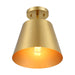 This sleek, chic 1-light ceiling semi-flush mount has a bold solid metal shade to concentrate and direct the light for a bright and dramatic glow. Its Natural Brass finish heightens the appeal. 11" height, 10" width, uses 1 standard size bulb of up to 60 watts. Bulb not included.
