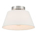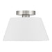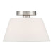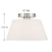Use this 3-light ceiling semi-flush mount to freshen up any room. The elegant white linen shade provides a crisp and classic look that works beautifully with any decor and style. The Brushed Nickel finish is wonderfully versatile. 7.5" height, 12" width. Uses 1 standard size bulb of up to 60 watts. Bulb not included.