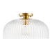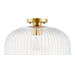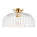 Create beautiful illumination with this 1-light ceiling semi-flush mount light! Its half-dome style ribbed glass shade brings in a big dose of textural intrigue and its Natural Brass finish adds richness. This ceiling light is 8.5" in height and 16" in width. It uses one standard size bulb of up to 60 watts. Bulb not included.