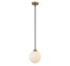 Find eye-catching mid-century modern style with this mini pendant! It features a stylish two-tone blend of brass and oiled rubbed bronze finishes, paired with an orb of white opal glass. 7.5" in height and 8" in width.