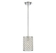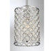 Decorate your home with the shimmering beauty of this 1-light pendant. Its woven patterned shade is adorned with faceted crystals and finished in Chrome. 8.5" in height and 6.25" in width.
