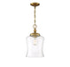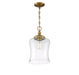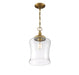 A curved, bell-shaped shade of clear glass imparts subdued yet dramatic style in this 1-light mini pendant, finished in Natural Brass. It is 16.5" in height and 9.75" in width, plus it comes with 120" of chain to let you adjust the hanging height as needed. This light uses 1 standard size bulb with a maximum of 60 watts, is LED compatible and is dimmable.