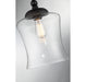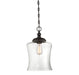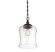 This 1-light pendant showcases a curving shade of clear glass and is finished in Oil Rubbed Bronze. 16.5" in height and 9.75" in width.