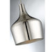 The contemporary style of this 1-light pendant is an excellent choice for fashionable illumination. It has a solid metal shade and is finished in Polished Nickel. 14" in height and 10.5" in width.