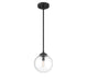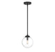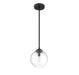Get midcentury modern inspired style for your home with this 1-light mini pendant, featuring an orb shade of clear glass. Finished in Matte Black. It is 8.75" in height and 8" in width, plus it comes with three 9.5" downrods. This light uses 1 candelabra size bulb of up to 60 watts maximum, is LED compatible, is dimmable and can be used on a sloped ceiling.