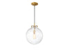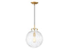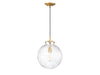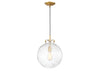 This 1-light mini pendant showcases an intriguing vintage-inspired look that is perfect for today's homes. Its orb-shaped ribbed clear glass shade brings eye-catching texture to go with the natural brass finish. 16" in height and 12" in width.