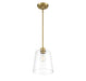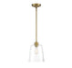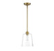 Sometimes, a simple look makes the biggest impact, like with this elegantly understated 1-light pendant. Featuring a large, conical shade of clear glass and slender hardware in a natural brass finish, this pendant is sure to boost the light and style in your home. It is 11.5" in height and 9.5" in width, plus it comes with three 9.5" downrods. It uses 1 standard size bulb of up to 60 watts, is LED compatible and is dimmable.