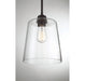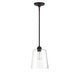 Sometimes, a simple look makes the biggest impact, like with this elegantly understated 1-light pendant. Featuring a large, conical shade of clear glass and slender hardware in an oil rubbed bronze finish, this pendant is sure to boost the light and style in your home. It is 11.5" in height and 9.5" in width, plus it comes with three 9.5" downrods. It uses 1 standard size bulb of up to 60 watts, is LED compatible and is dimmable.