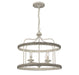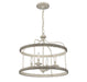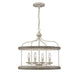 This charming 4-light drum pendant from Meridian is a lighting dream for lovers of farmhouse-inspired style. Scalloped detailing along the edges of the pendant banding brings in another level of texture and interest. The weathered Silo finish uses different hues of gray and white to create laid-back beauty. Use this pendant to brighten up rooms with shabby chic, bohemian and rustic decor styles. This pendant is 17" in height and 18" in width, plus it comes with 120" of chain to let you adjust the hanging height. This pendant uses 4 candelabra size bulbs of up to 60 watts each, is LED compatible and is dimmable.