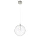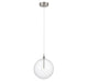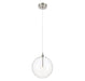 This Meridian 1-light pendant showcases clean, minimal styling with a hand-blown orb of clear glass and a brushed nickel finish. You can adjust the hanging height of the light for total customization! Bi-pin T4 LED bulb included.