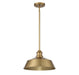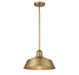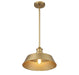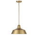 Bring a bold touch of vintage industrial style to any space with this 1-light pendant. It features a solid metal shade, eye-catching detailing and a natural brass finish. 8" height, 14" width. Uses standard size bulb, max 60 watts. LED bulb compatible.