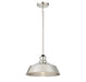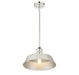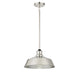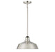 Bring a bold touch of vintage industrial style to any space with this 1-light pendant. It features a solid metal shade, eye-catching detailing and a polished nickel finish. 8" height, 14" width. Uses standard size bulb, max 60 watts. LED bulb compatible.
