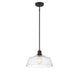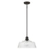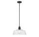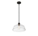 Bring a bold touch of vintage industrial style to any space with this 1-light pendant. It features a highly textured shade of glass, eye-catching detailing and an oil rubbed bronze finish. 8" height, 15" width. Uses standard size bulb, max 60 watts. LED bulb compatible.