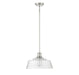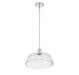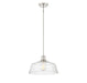 Bring a bold touch of vintage industrial style to any space with this 1-light pendant. It features a highly textured shade of glass, eye-catching detailing and a polished nickel finish. 8" height, 15" width. Uses standard size bulb, max 60 watts. LED bulb compatible.
