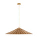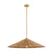 Add a relaxed, natural vibe to any room with this chic 1-light pendant. It flaunts a highly textured shade of natural rattan paired with a Natural Brass finish, bringing in a bold and fashionable flair. 8" height and 35" width. Uses one standard size bulb, max 60 watts. LED bulb compatible. Comes with four 12" downrods and one 6" downrod.