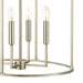 This tall, cylindrical 4-light chandelier has an airy structure that expertly combines sharp and round angles and is finished in Brushed Nickel. It is 21" in height and 19" in width. Uses four candelabra size bulbs of up to 60 watts per bulb. Bulbs not included.