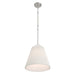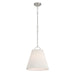 With a crisp white knife-pleat shade, subtle yet thoughtful detailing and a Brushed Nickel finish, this 1-light pendant beautifully brightens up any room. It is 36" in height and 15" in width. Uses one standard size bulb of up to 60 watts. Bulb not included.