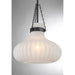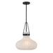 Traditional style lighting is given an ethereal upgrade in this beautiful 1-light pendant. Its fluted ribbed glass shade is made from strie glass featuring dazzling swirls that draw the eye, soften the glow and work beautifully with the Matte Black finish. This pendant is 15" in width and has an adjustable height ranging from 19" to 73". Comes with four 12" downrods and one 6" downrod. Uses one standard size bulb of up to 60 watts. Bulb not included.