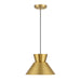 Get iconic mid-century modern style with this 1-light pendant, which has a chic conical solid metal shade finished in Natural Brass. The sleek black hanging cord allows you to adjust the hanging height to meet the needs of your space. The height ranges from 7.75" to 127.75". The width is 12". Uses 1 standard size bulb of up to 60 watts. Bulb not included.